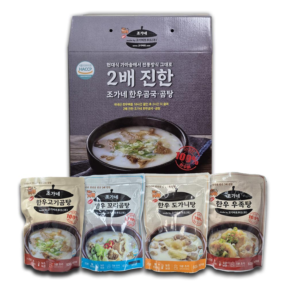 뷰티케어 (고기곰탕 500g, 우족탕 600g, 꼬리곰탕 650g, 도기니탕 600g)조가네한우곰탕 4종선물세트 (고기곰탕 500g, 우족탕 600g, 꼬리곰탕 650g, 도기니탕 600g)